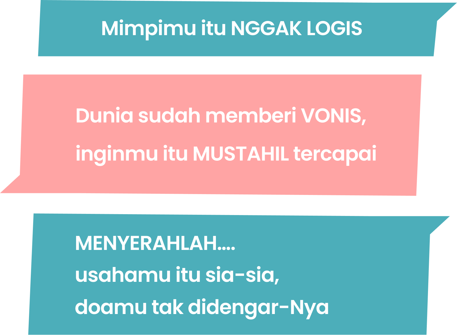 dan feeling aja surah ini lagi banyak dibutuhkan dan banyak reletenya buat banyak orang yang punya banyak MIMPI, punya CITA-CITA, tapi entah kenapa dalam perjalanannya seperti ada tembok besar menghadang kokoh.