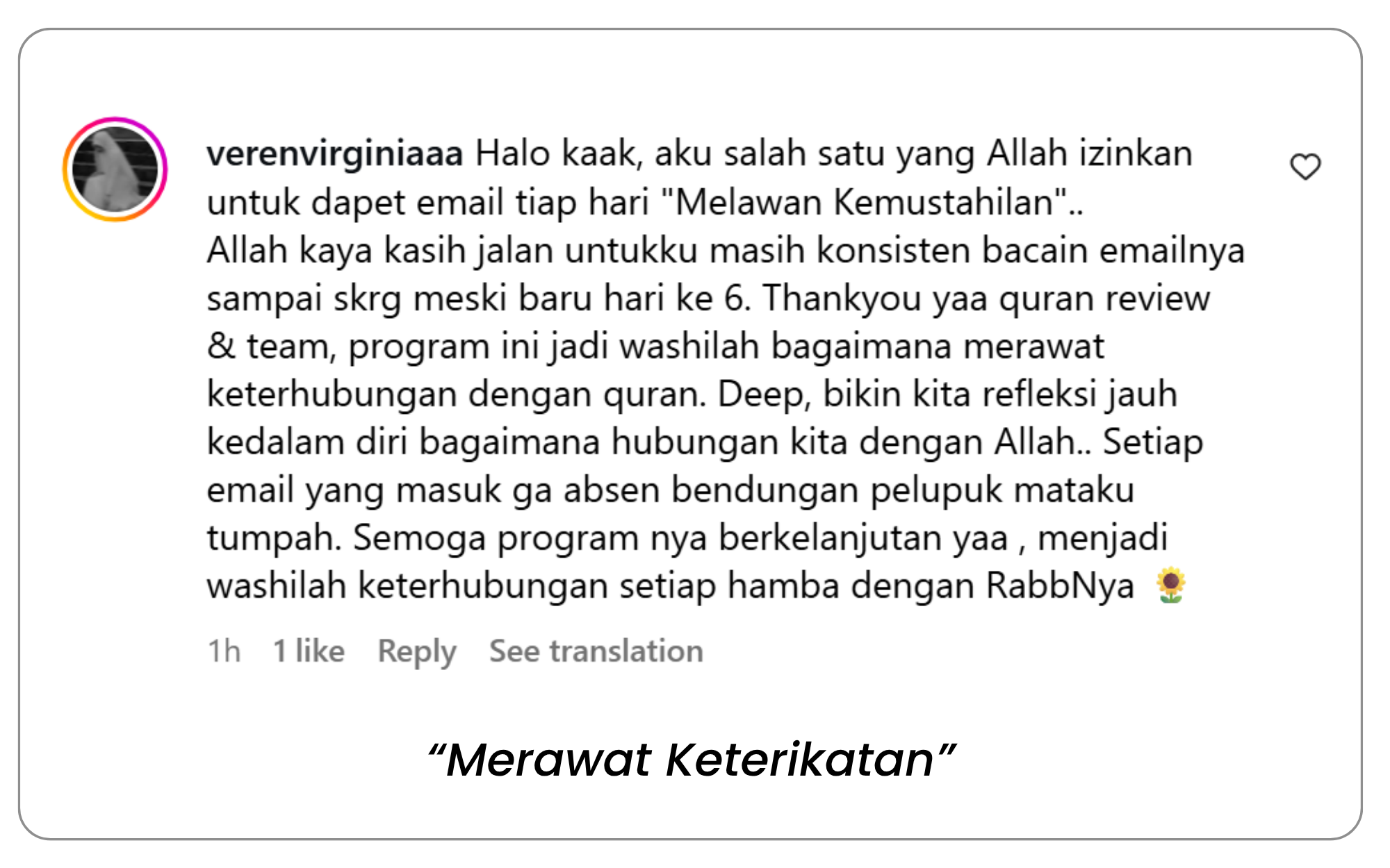 Iya, rasa penasaran akan gimana hasilnya atau dampaknya, ketika setiap hari selama 30 hari, seseorang itu ada aktivitas Tadabbur Quran pada kesehariannya.