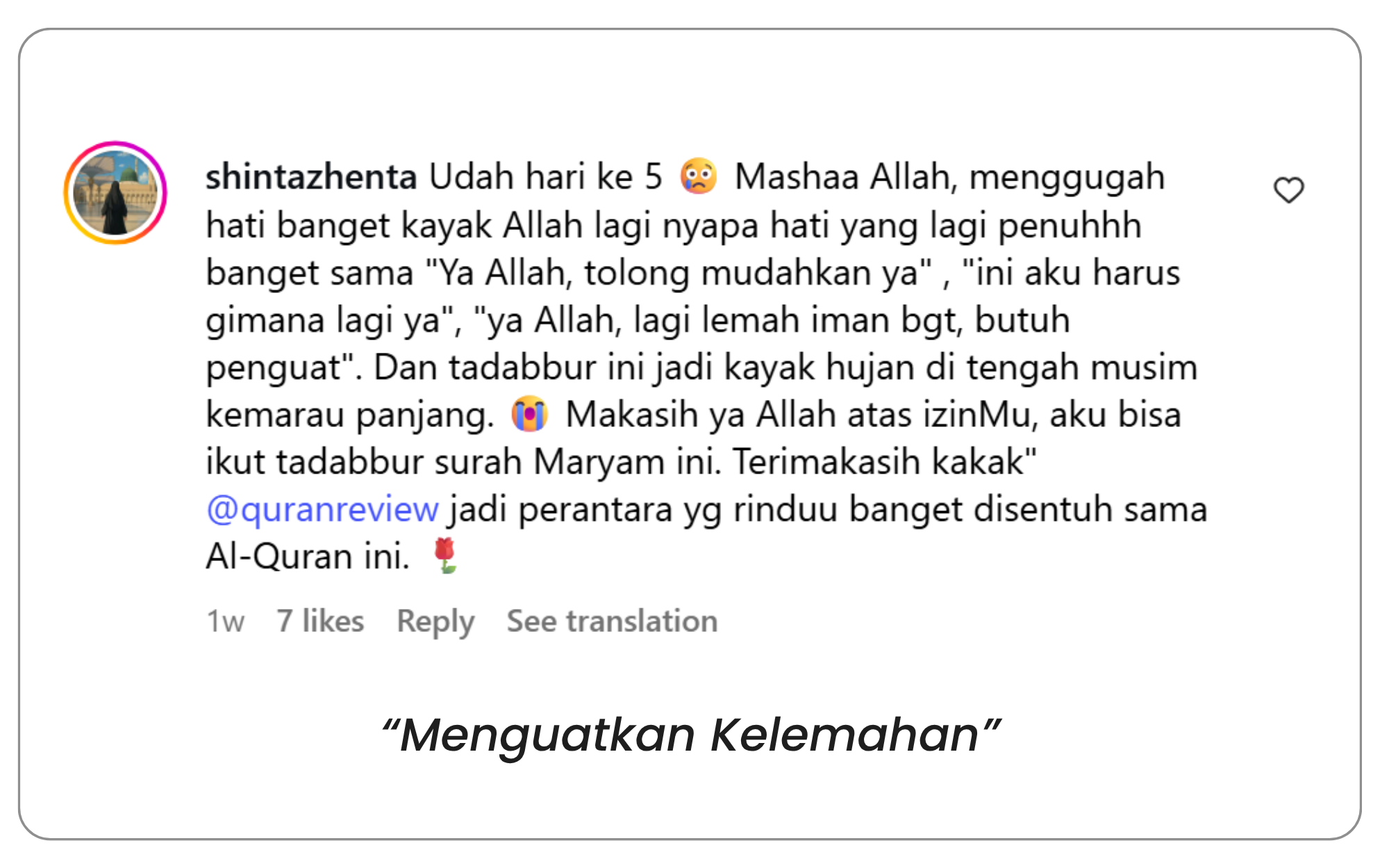 dari tahun 2019 quranreview hadir, kami selalu berkomitmen dalam tujuan: